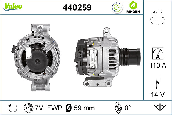Angle de fixation [degrés] : 0, Courant de charge de l'alternateur (A) : 140, Nombre de gorges : 6, Nombre de trous de fixation : 2, Pince : B+ (M8), Poulie pour courroies - Ø [mm] : 54,0, Poulies : avec poulie débrayable, Qualité : +Line, Voltage [V] : 12