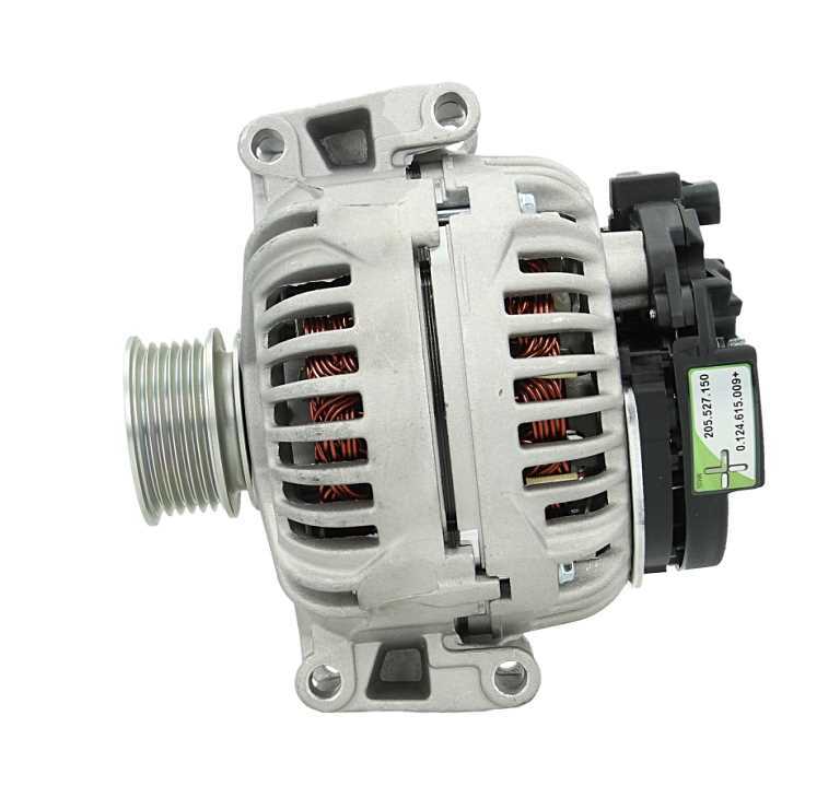 Angle de fixation [degrés] : -90, Courant de charge de l'alternateur (A) : 150, Nombre de gorges : 6, Nombre de trous de fixation : 4, Pince : B+ (M8), Poulie pour courroies - Ø [mm] : 68,0, Poulies : avec poulie débrayable, Qualité : +Line, Voltage [V] : 12