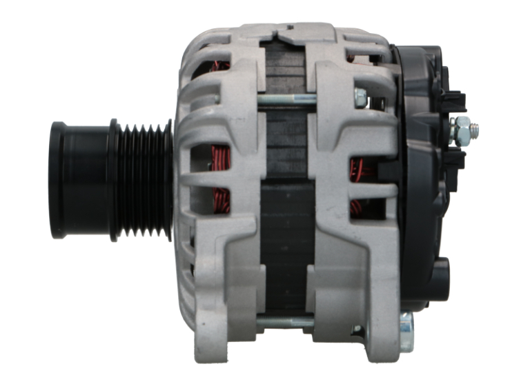 Angle de fixation [degrés] : -90, Courant de charge de l'alternateur (A) : 140, Nombre de gorges : 6, Nombre de trous de fixation : 4, Pince : B+ (M8), Poulie pour courroies - Ø [mm] : 47,9, Poulies : avec poulie débrayable, Qualité : +Line, Voltage [V] : 12