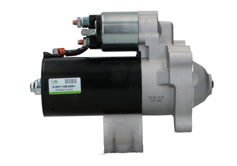 Angle de fixation [degrés] : +105, Bride Ø [mm] : 74,0, Nombre de dents : 10, Nombre de trous de fixation : 2, Pince : B+ (M8), Puissance nominale [kW] : 2,0, Qualité : +Line, Sens de rotation : Rotation dans le sens des aiguilles d'une montre, Voltage [V] : 12