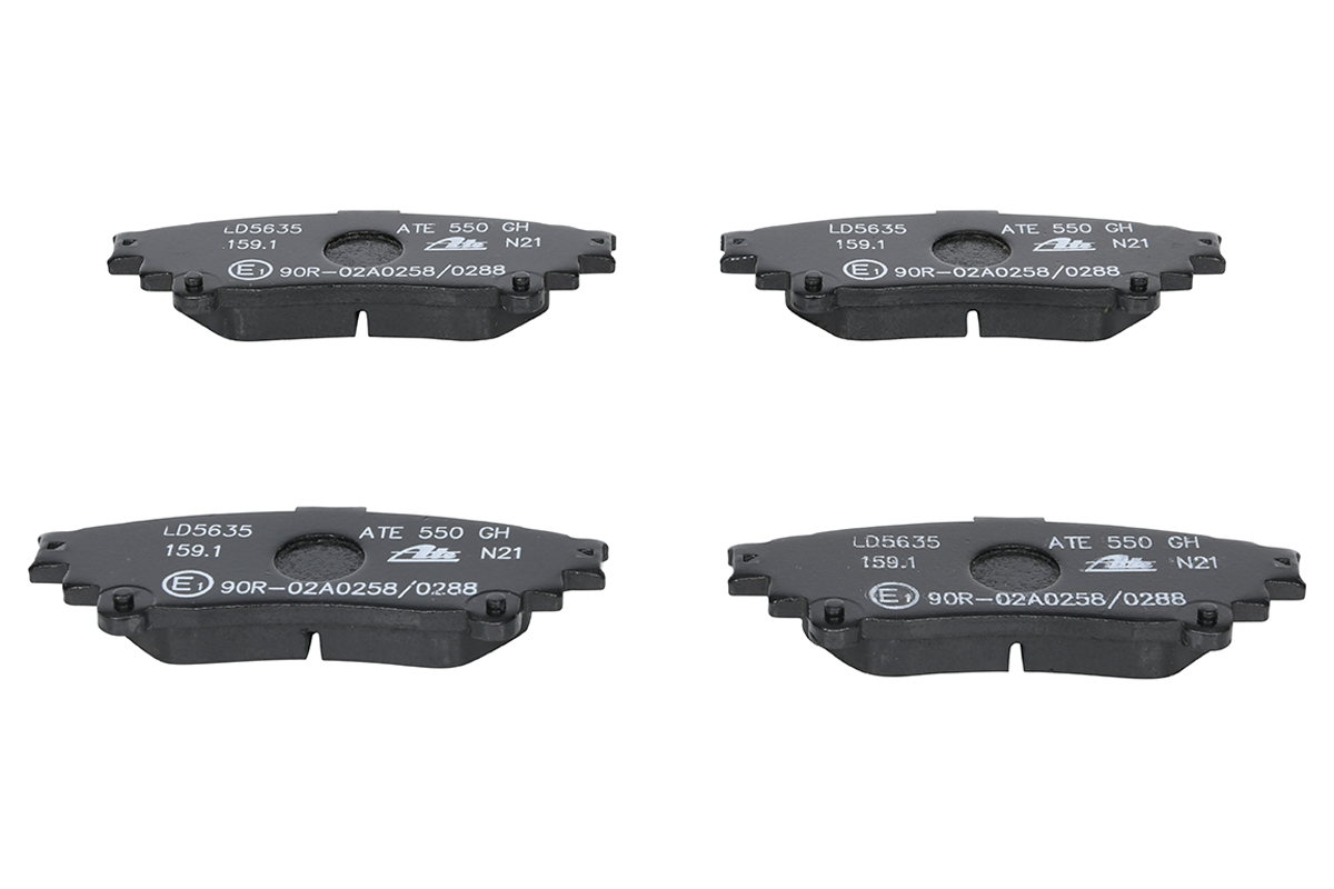 Épaisseur [mm] : 19, Hauteur 1 [mm] : 58,9, Hauteur 2 [mm] : 61,6, Indicateur d'usure : contact de signal d'usure inclu, Largeur [mm] : 156,4, Longueur 2 [mm] : 155,1, Marque de conformité : E1 90R - 01024/404, Montage d'origine : ATE, Nombre d'indicateurs d'usure [par essieu] : 2